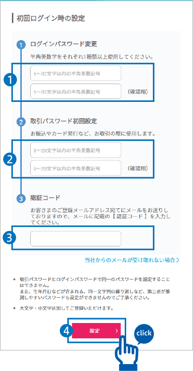 お取引を始める前に、以下の手順に沿って初期設定を行ってください。