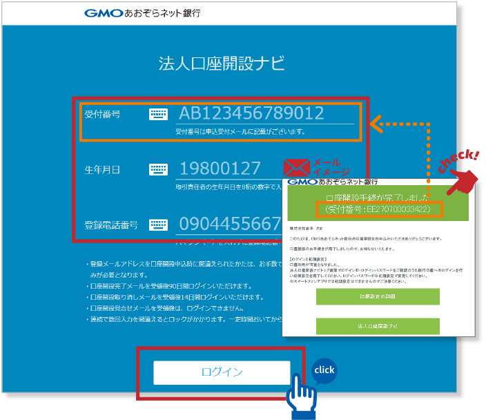 受付番号は口座開設完了や申込時に届くメールにてご確認ください。