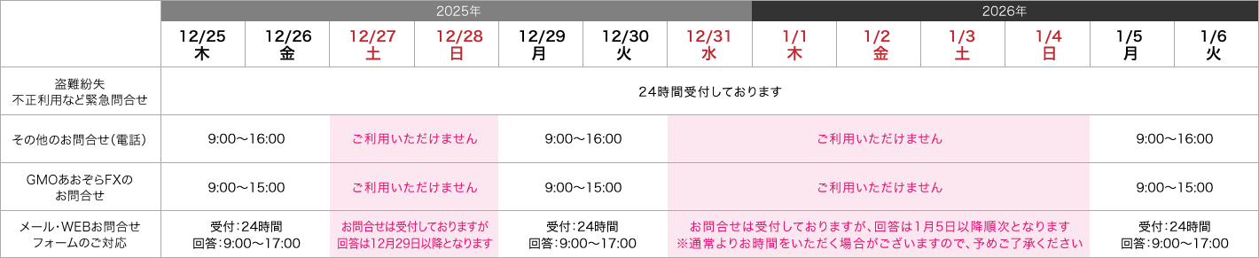 お問い合わせの内容によっては、年内にご連絡いただいた場合でも1月5日以降の回答になる場合がございますので、予めご了承ください。