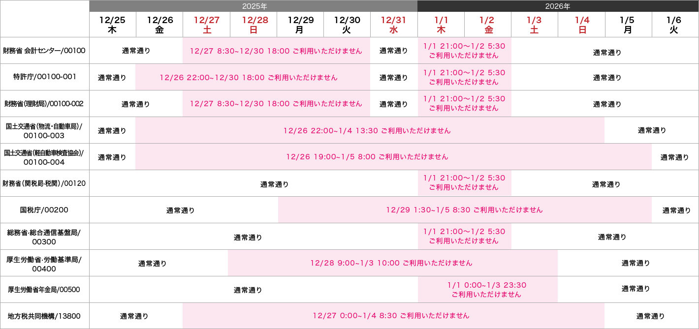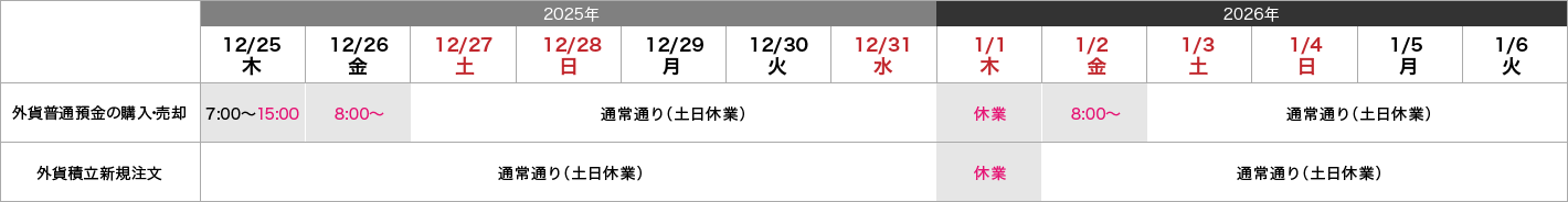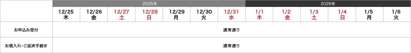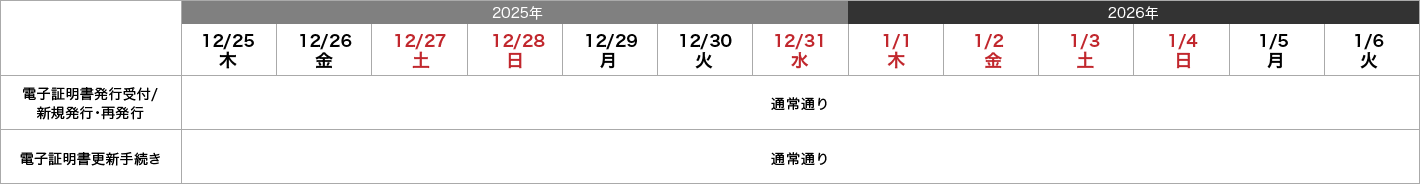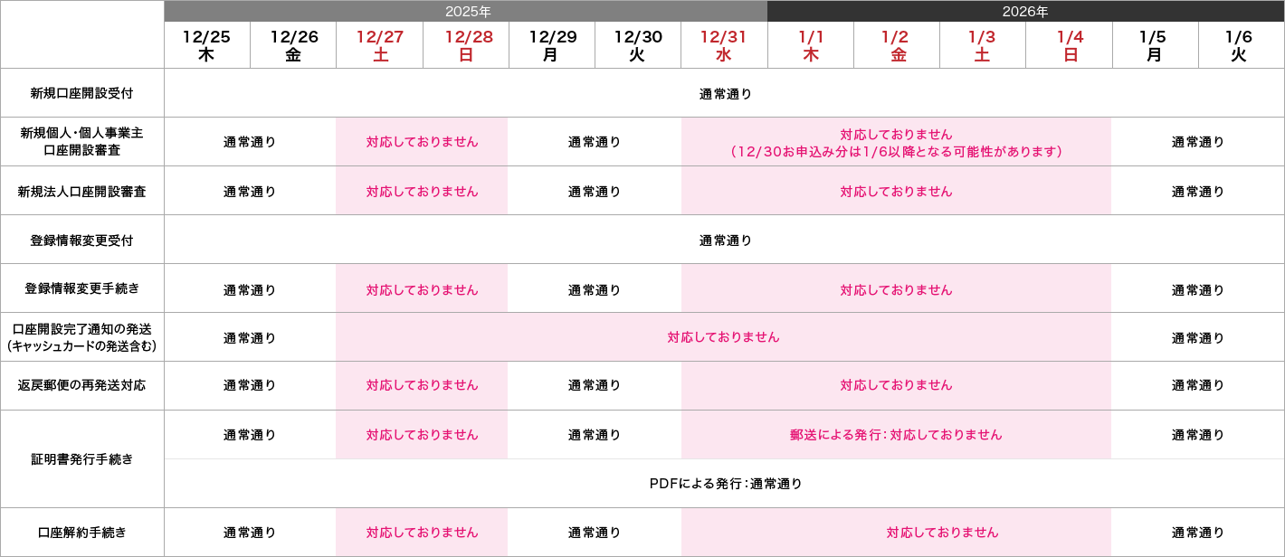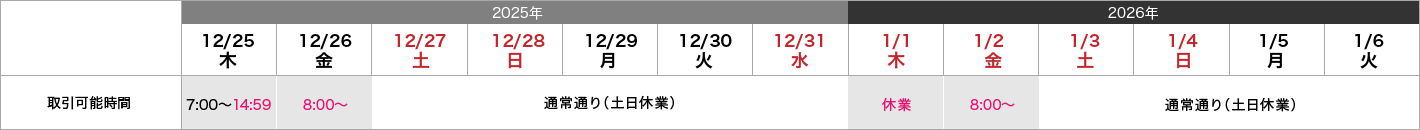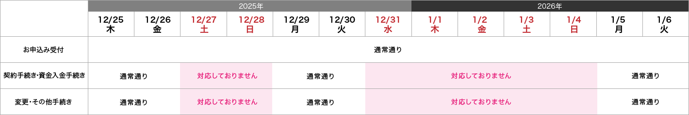 年末年始の営業に関して、下記のとおりご案内いたします。