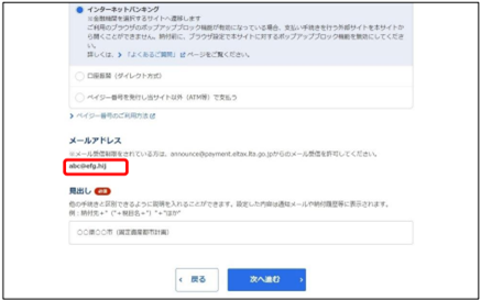 設定したメールアドレスに「Pay-easy(ペイジー)納付準備完了のお知らせ」メールが届きます。