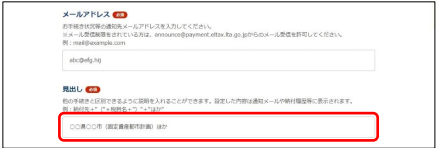 メールアドレスを確認し、ほかの手続きと区別するための「見出し」を入力