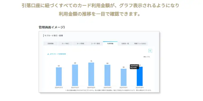 利用データも自動で集約されるため、経理部門は支出状況を迅速に把握でき、資金計画や予算管理を正確に行いやすくなります。ポイント還元やキャッシュバックが得られるカードを選べば、経費削減にも効果的です。