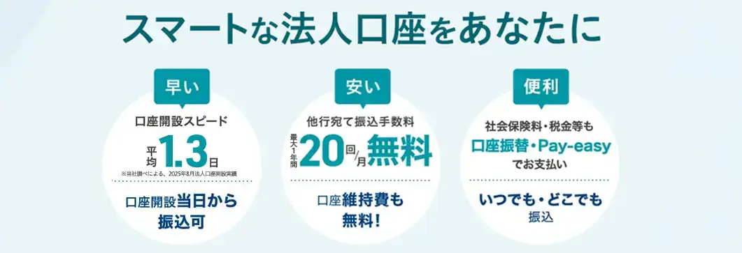 - 口座開設スピードが平均1.3日と早い!(2025年8月法人口座申込企業の実績)