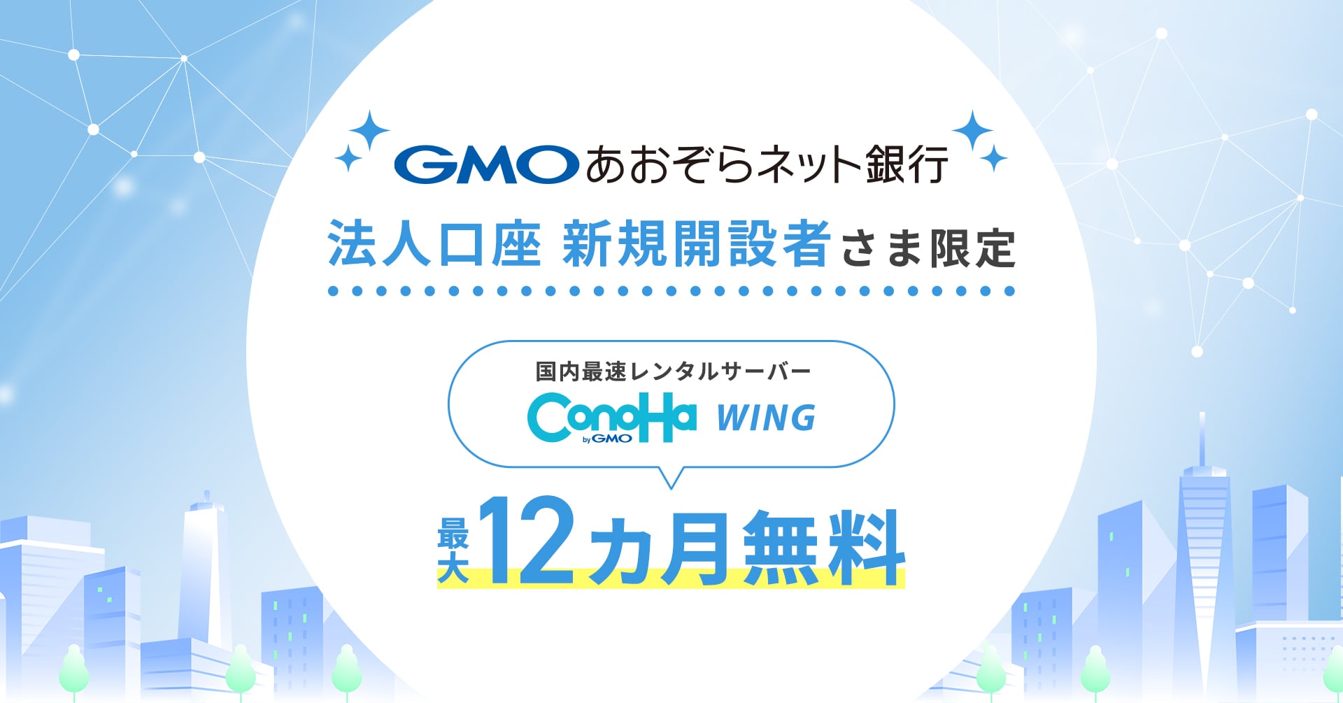 GMOあおぞらネット銀行株式会社(代表取締役会長:金子 岳人、代表取締役社長:山根 武 以下、GMOあおぞらネット銀行)は、2025年9月25日(木)より、法人口座を新規に開設されたお客さま(*1)が、GMOインターネット株式会社(代表取締役 社長執行役員:伊藤 正 以下、GMOインターネット)が提供する国内最速(*2)レンタルサーバー「ConoHa WING byGMO」を、最大12カ月間無料でご利用いただける、創業期支援に資する取り組みを開始します。