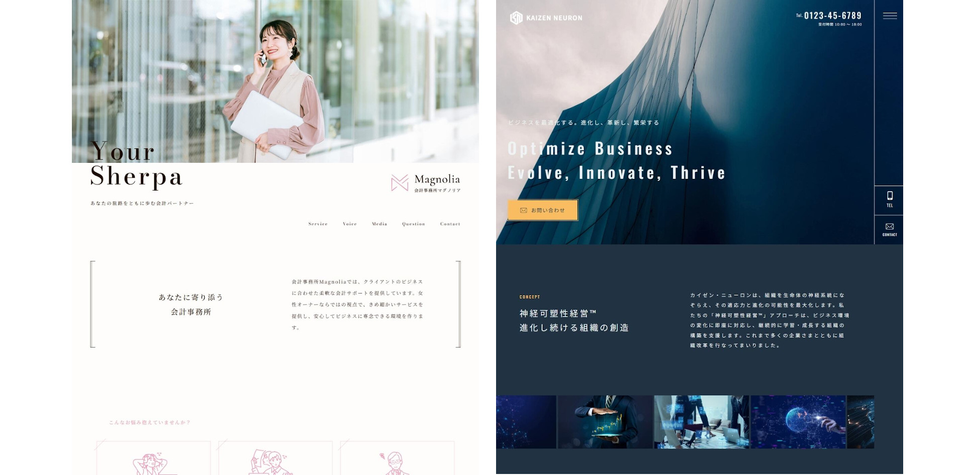 ▼「ConoHa WING byGMO」のWordPressテーマ「OLTANA」で制作したHPのサンプル