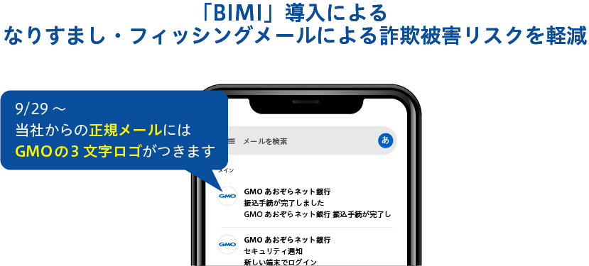 そのため、当社では、受信メールが一目で当社から発信された正規のメールだと判別いただけるようBIMIを導入いたします。今後、当社からのメールには、差出人欄にGMO3文字のロゴが表示されるようになります。メールを開封する前に必ず差出人のロゴをご確認いただきますようお願い申し上げます。