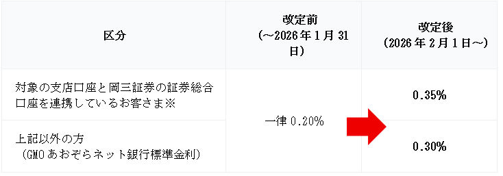 岡三証券株式会社(以下、岡三証券)は、GMOあおぞらネット銀行株式会社(以下、GMOあおぞらネット銀行)と共同開発した銀行サービス「岡三BANK」において、2月1日(日)より、円普通預金金利および円定期預金金利を改定いたしましたので、下記のとおりお知らせいたします。