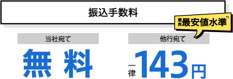 - 口座維持費無料 他行宛て振込手数料143円 業界最安値水準※